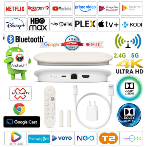 Google TV Streamer 4K je evolucija Chromecasta v zmogljiv namizni "set-top box". Z vgrajenim Gigabitnim mrežnim priklopom, kar 4GB delovnega pomnilnika (prej 2GB) in 32GB prostora (prej 8GB) je to končno naprava, ki "leti". Podprti predvajalniki Kodi/Plex delujejo v polni 4K ločljivosti z Dolby Vision in Dolby Atmos podporo.