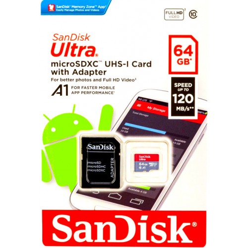 SanDisk 64GB Ultra microSDXC 120MB/s Class 10 UHS-I spominska kartica z adapterjem